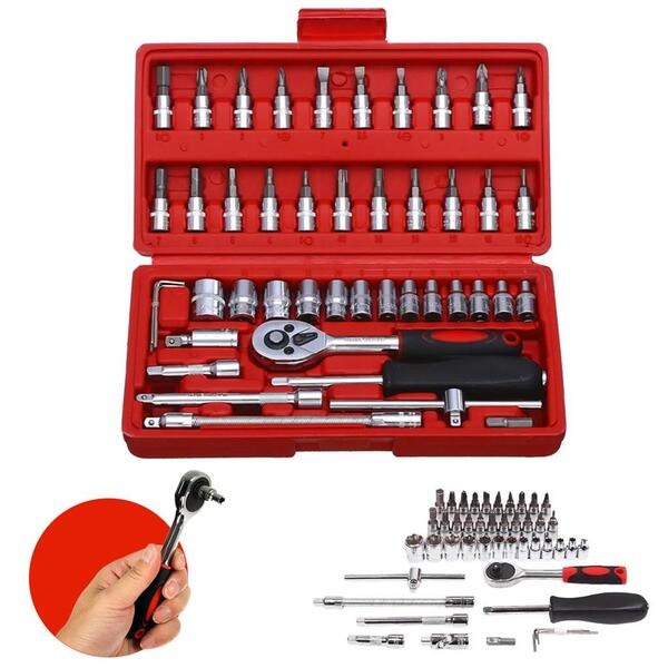 Jogo 46 Ferramentas Embralumi Chaves Soquetes Catraca Bits
