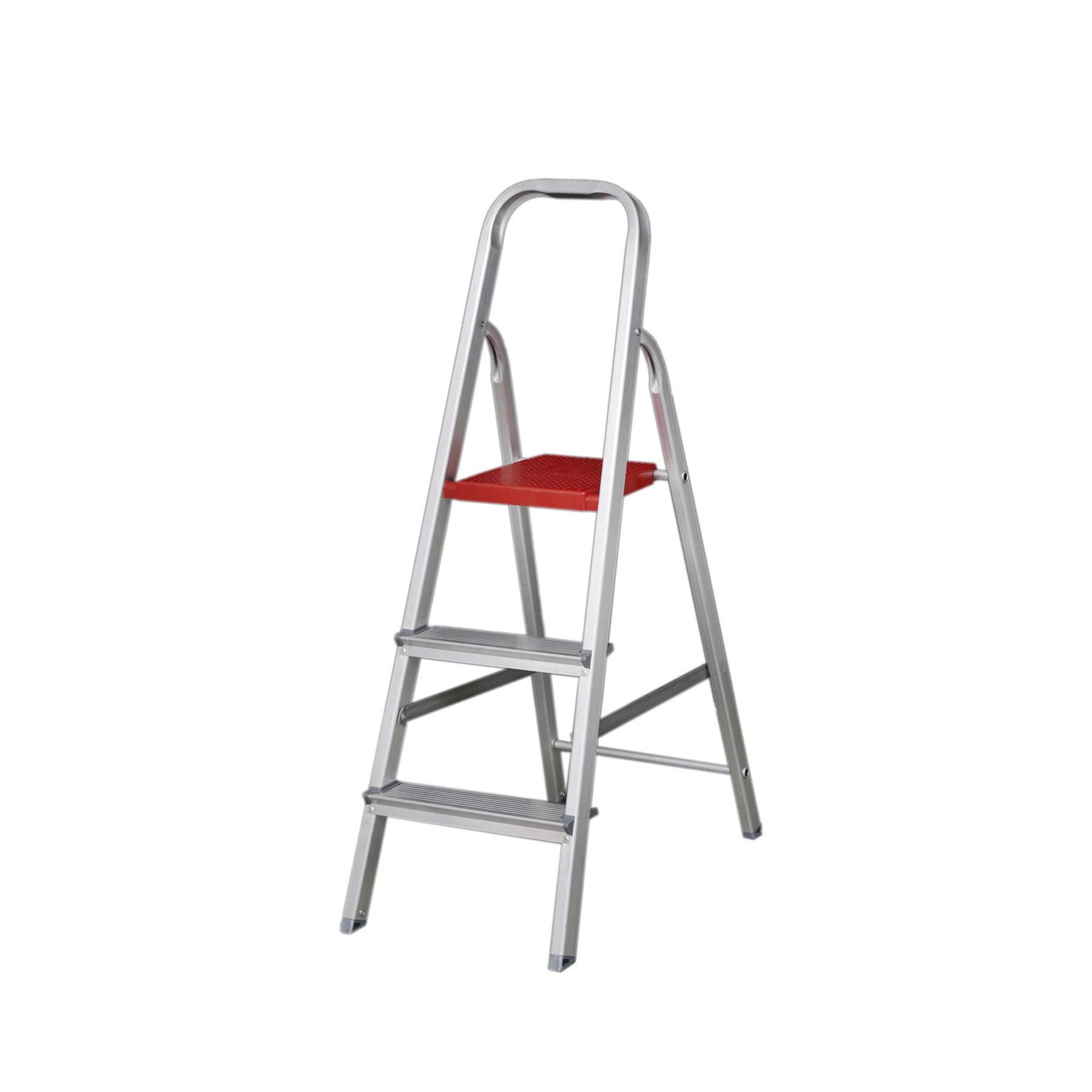 Escada Alumínio 3 Degraus 1,08m 120kg Prata e Vermelho Reisam